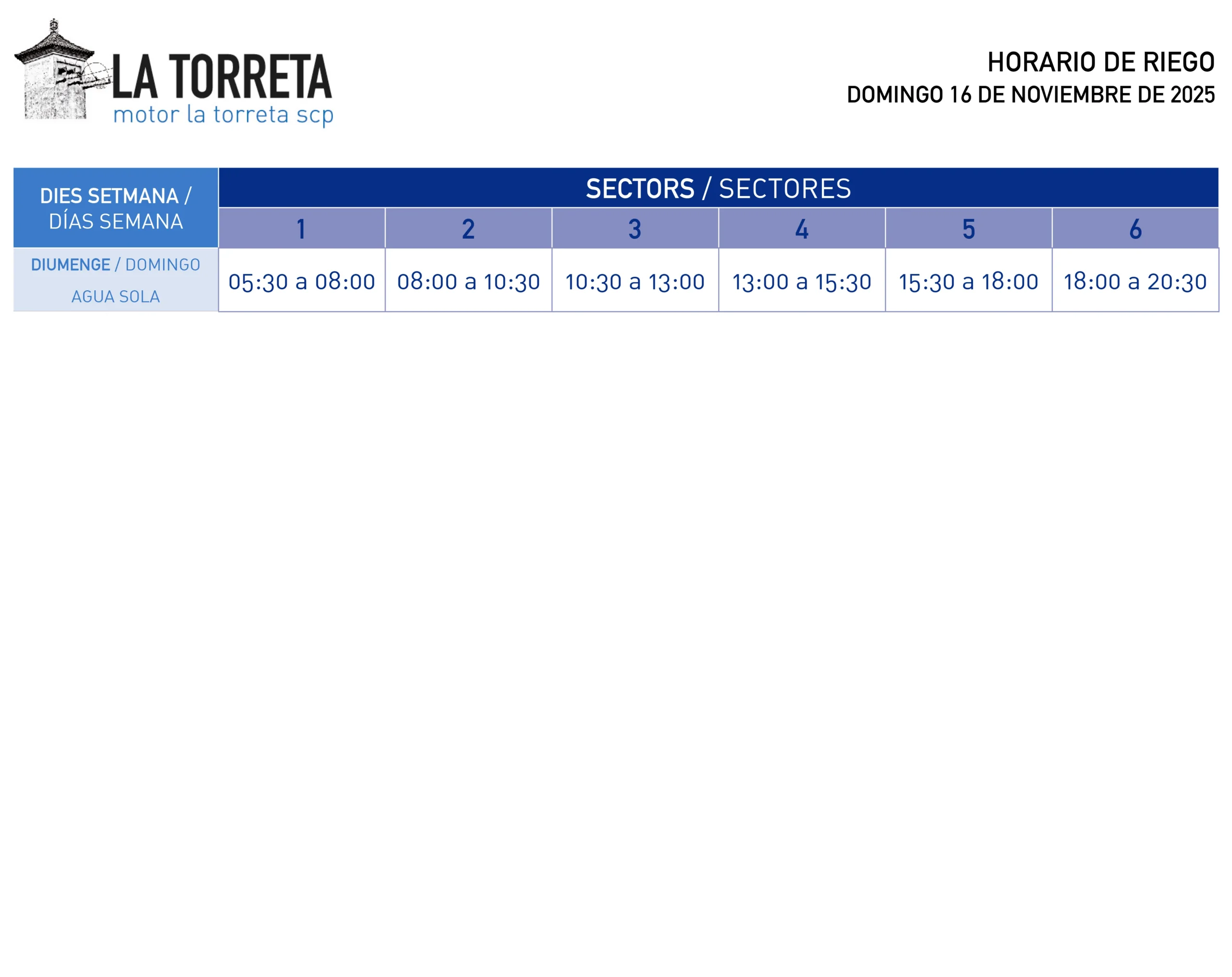 SE RECUERDA QUE EL AGUA (con o sin fertilizantes) QUE SE SUMINISTRA ES EXCLUSIVAMENTE PARA USO AGRÍCOLA